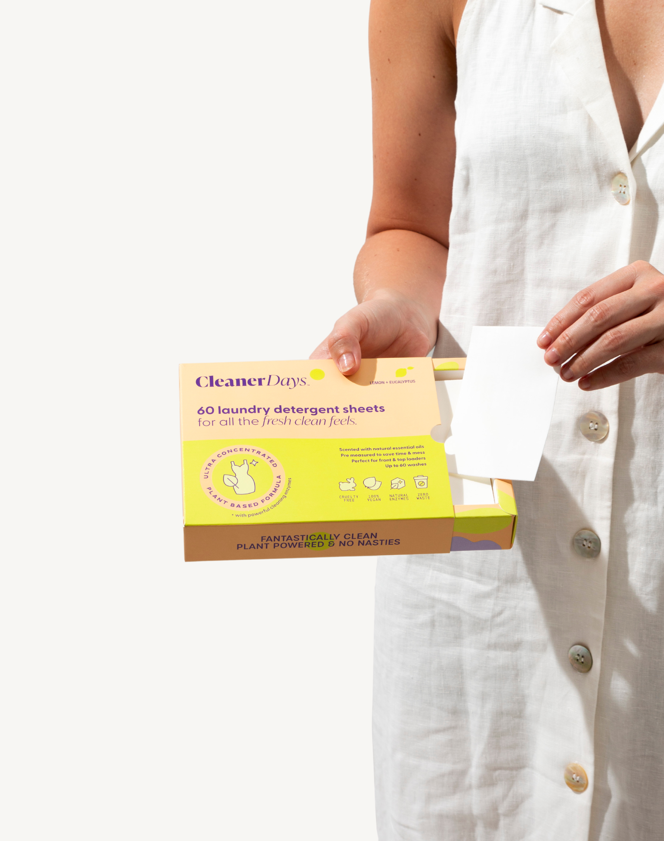 Our pre-measured sheets are super convenient to quickly pop on a load with the correct detergent dose every time. Less mess and less fuss.